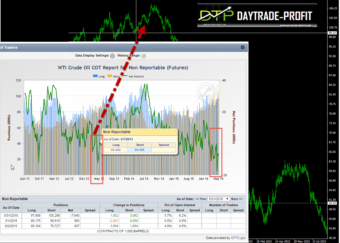 If we will look at the COT data we see also that the position is mixed = net long and net short on the crude oil prices are among the traders, Speculators cut their total long and short positions on WTI crude to the lowest since January 2015 – the situation reminds me may 2013 when the cot shows the same pattern see below: