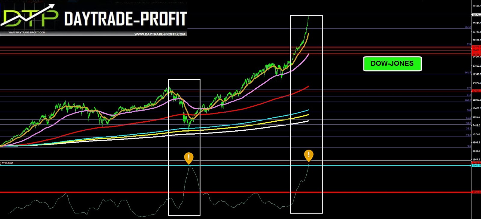 one more thing to finish is to test one indicator – as you can see in the chart only one time in the past, he breaks up the red line (extreme situation) -this movement was in 2008 and bring 45% move  from the break, so, if we will go now those days, its give us the same target as I mention above apx 25,600 + but from those levels the risk is high, if im right and take consider the last move in 2009 ( extreme situation ) so we left aps 2 weeks or when the indicator I mentioned will reach too high extreme levels as happened in 2009  – its stood on 2131 while today he stands on 2043 ,it’s really not far, more than that if you will look on the bars and the angle that price climbing, its really annoying angle ( Very sharp gradient) –this week we crossed this level !!!