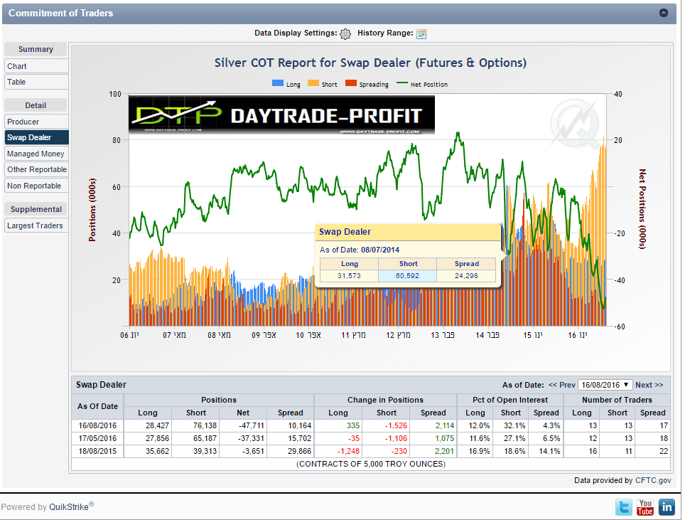 The COT investigation show an advancement Hedgers’ present grow net position in silver – on the short side plus if we will look on history , we can see that it’s the same behavior – accrued few times in the past ,while the most significant occasion appeared in 26.2.2008