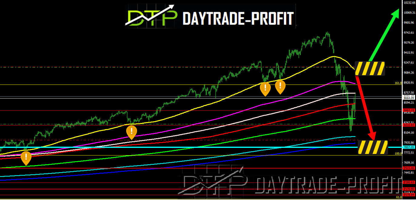 In 26.2.2020 there was big inside day correction – look on the bands from 26,700 points to 27,500 points – not managed to cross above the azure band – if next day it will manage to cross this band you should expect to meet red bands critical -because since the trend changed the index didn’t successes to cross this band