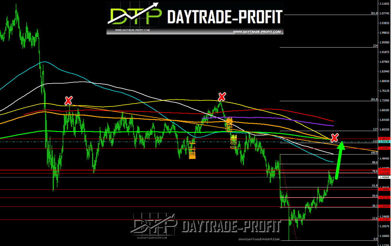 Break above those level will test the trend for the GBP USD , This target was derived from the resistance (white band ) through all his decline from 1.55-1.57_+ area – mark on the chart below