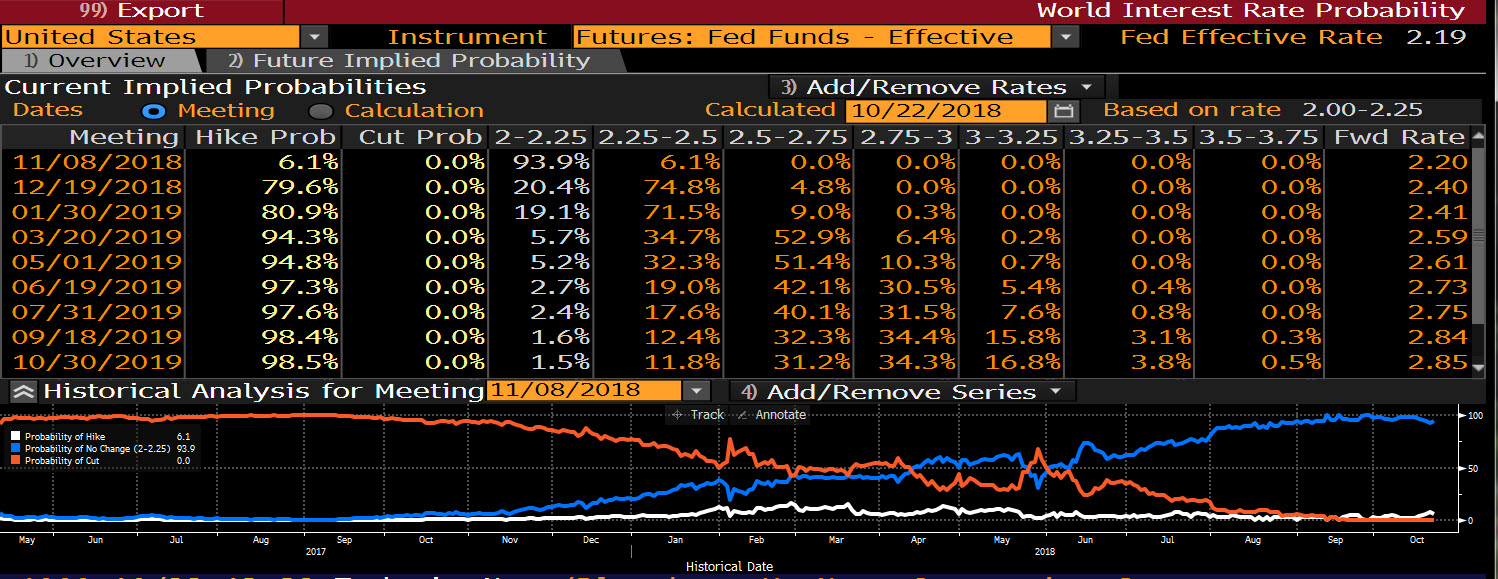 Currently, Fed funds futures are pricing in a 75% chance of a 25-bps rate hike in December.