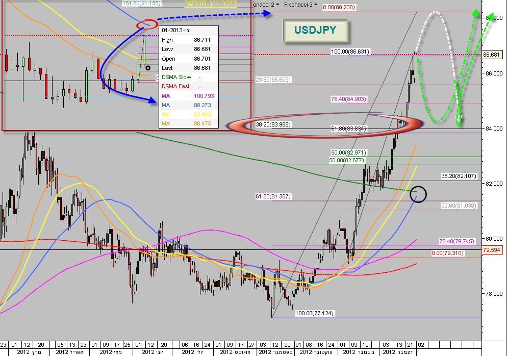 In my opinion, we have the first 2 options, continued increases until significant monthly resistance to the 88.20 area and from there the repair will begin to the 84th area. In addition, a meeting of 2 tracks that yield another indicator