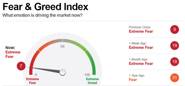 one last thing is the fear greed factor: Currently, the markets are very volatile and nervous, Sentiment markets is extremely pessimistic – CNN Money’s Fear and Greed Index combines 7 indicators to create a sentiment index for the stock market